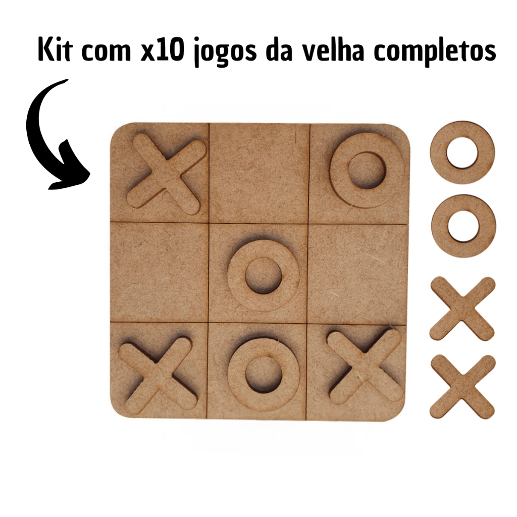 - O jogo da velha é um clássico, e agora em um conjunto de 10 unidades, é perfeito para revenda, lembrancinhas e presentes para familiares, amigos e até mesmo alunos. USE SUA CRIATIVIDADE!!!
